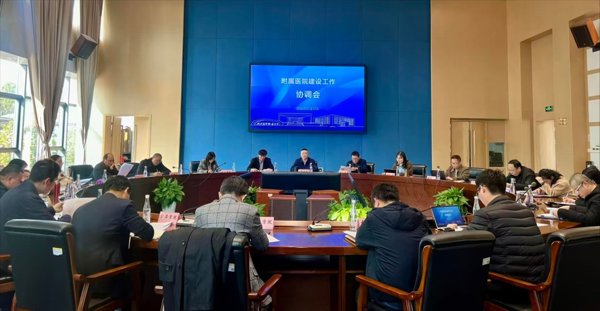 1月15日下午,我校召开附属医院建设工作协调会,进一步凝聚共识、明确任务,全面推进附属医院高质量建设。学校党委委员、副校长姜宇国出席会议,相关职能部门及各专业学院负责人参加会议。